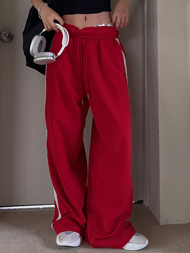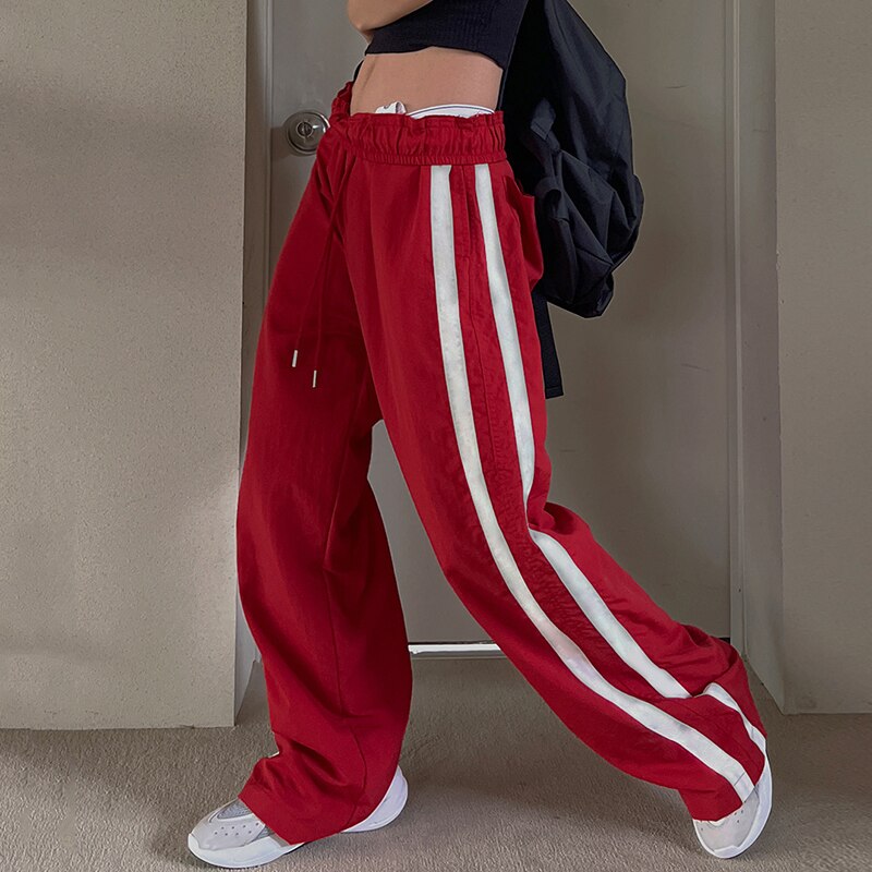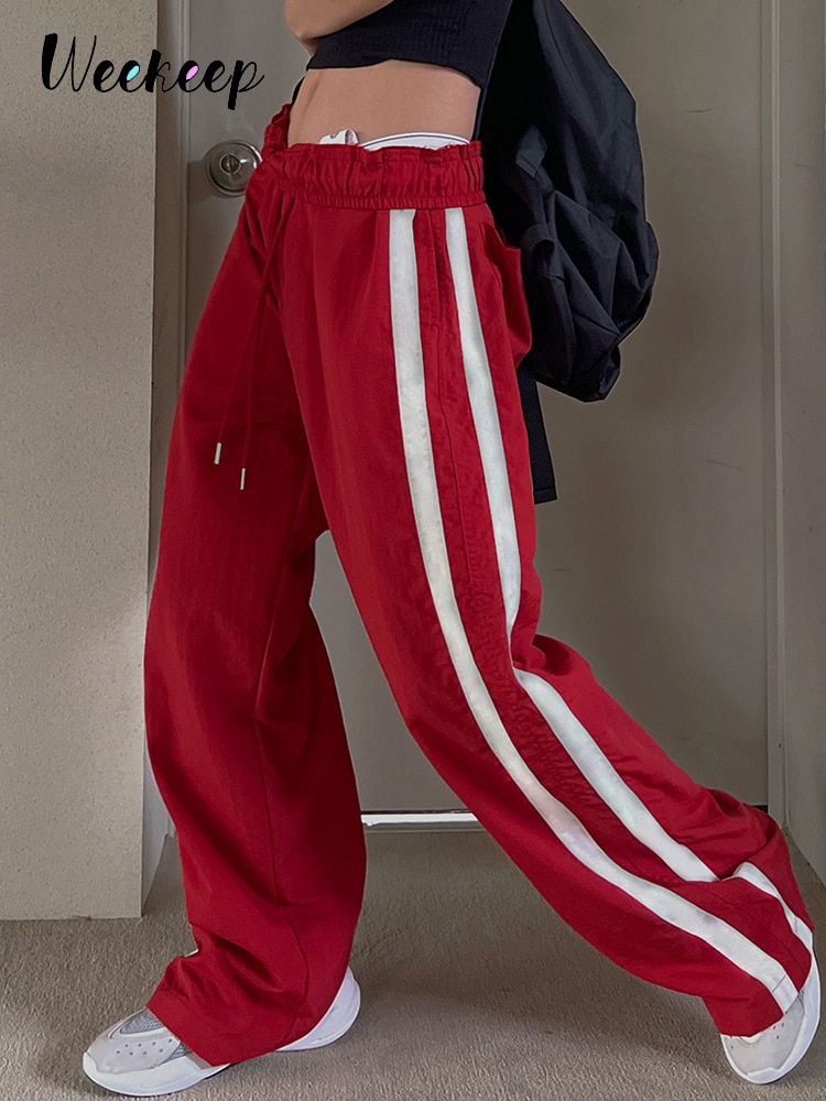 Uveng Baggy Jogging Sweatpants Elastic High Waist Side Stripe Casual Women Pants Streetwear Black Basic Trouser Korean Fashion