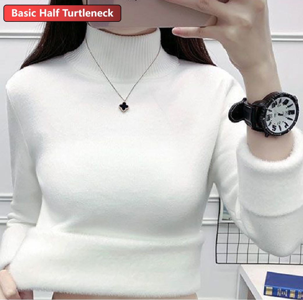 Uveng Warm Sweater Pullover Women Slim Thicken Plush Velvet Lined Knitwear Jumper Korean Half Turtleneck Poleras Soft Knit Tops