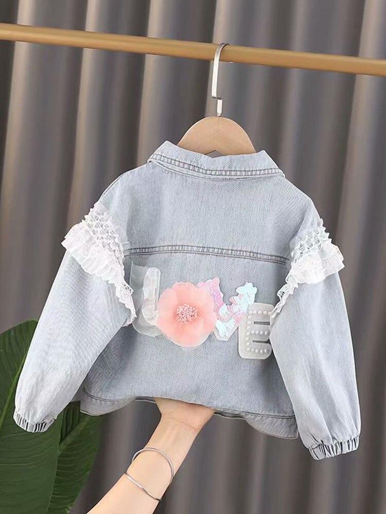 1-3 Year New Children's Denim Spring AutumnJackets Girl Love flower Jean Jackets Girls Kids Clothing Baby Lace Coat Casual