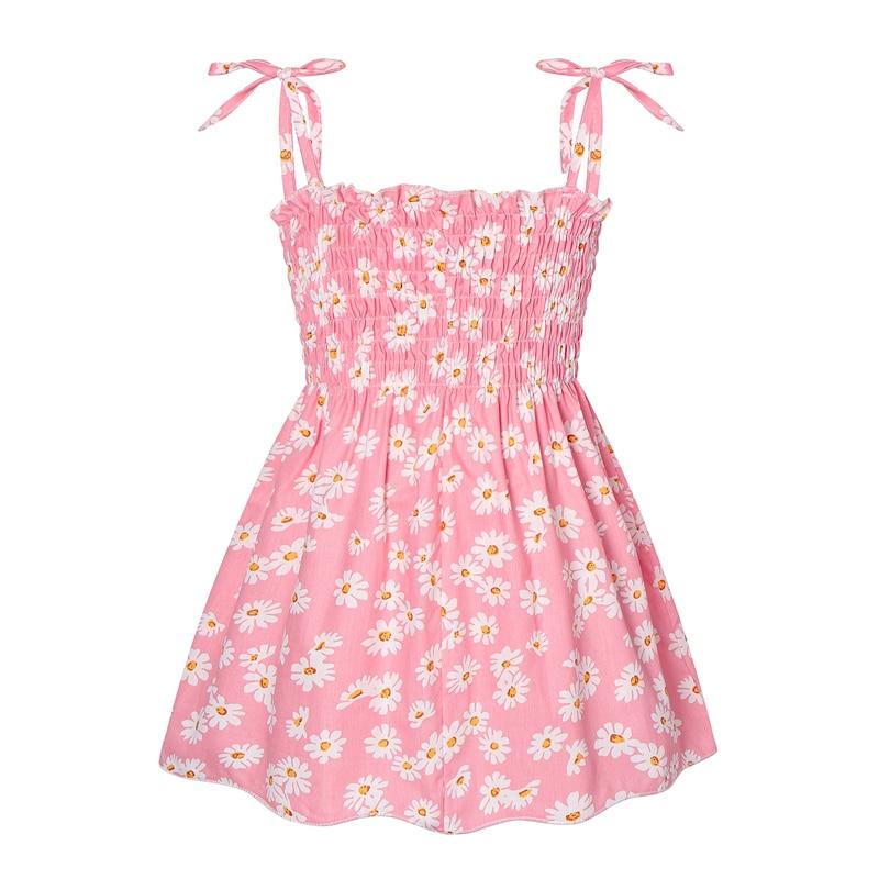 1-7 Years Baby Girls Dress Summer Children Elegant Sling Princess Dress Flower Print Kids Braces Dresses Girl Cotton Clothing