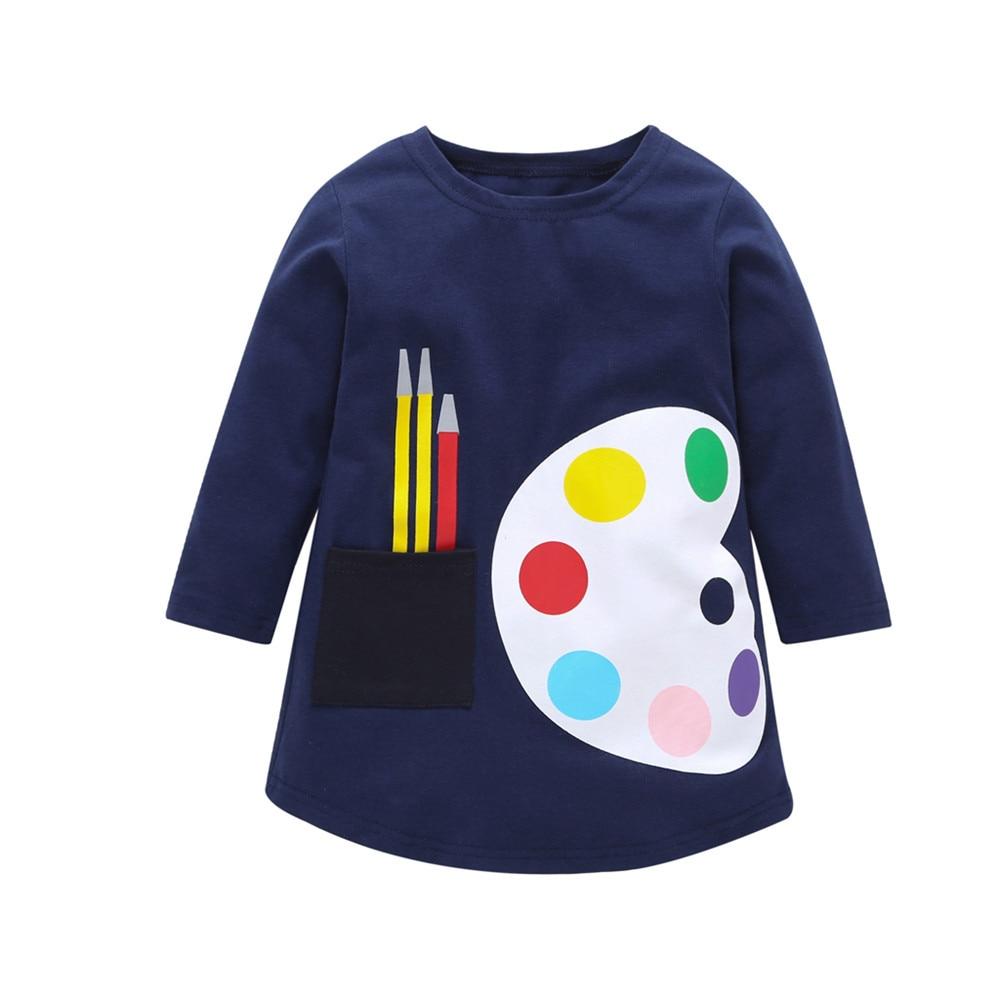 1-7 Years Kids Girl Dress Toddler Baby Long Sleeve Dresses Summer Children Clothing Girls Cotton Princess Dress Kid Tops Outfits