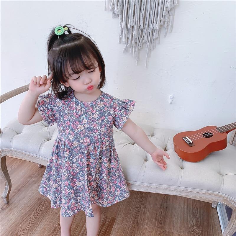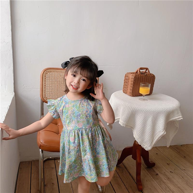 1-7T Toddler Kid Baby Girl Floral Dress Elegant Summer Ruffle Short Sleeve Flower Print Sundress Cute Sweet Party Outfit Clothes