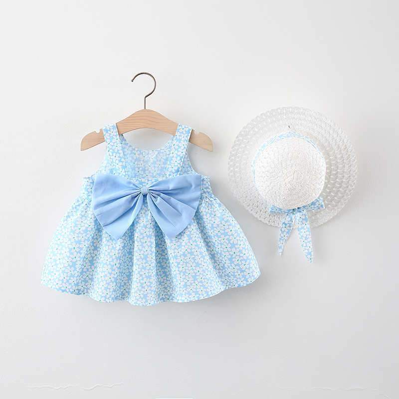 1 to 4 Years 2021 New Fashion Baby Girl Sleeveless Dresses Princess clothing Cute 2pcs set Party Cotton Flower Children Bow Hat