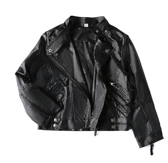 2018 autumn baby pu jacket girls rivet zipper cool jacket Leather clothing 5-11 years old Korean leather jacket all