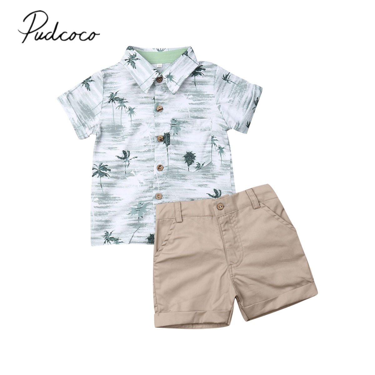 2019 Baby Summer Clothing Toddler Baby Boy Formal Suit Flower Dress Shirt+Shorts Bottom Beachwear 2pcs Set Outfits Clothes 1-6T