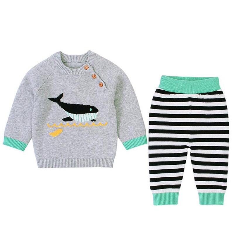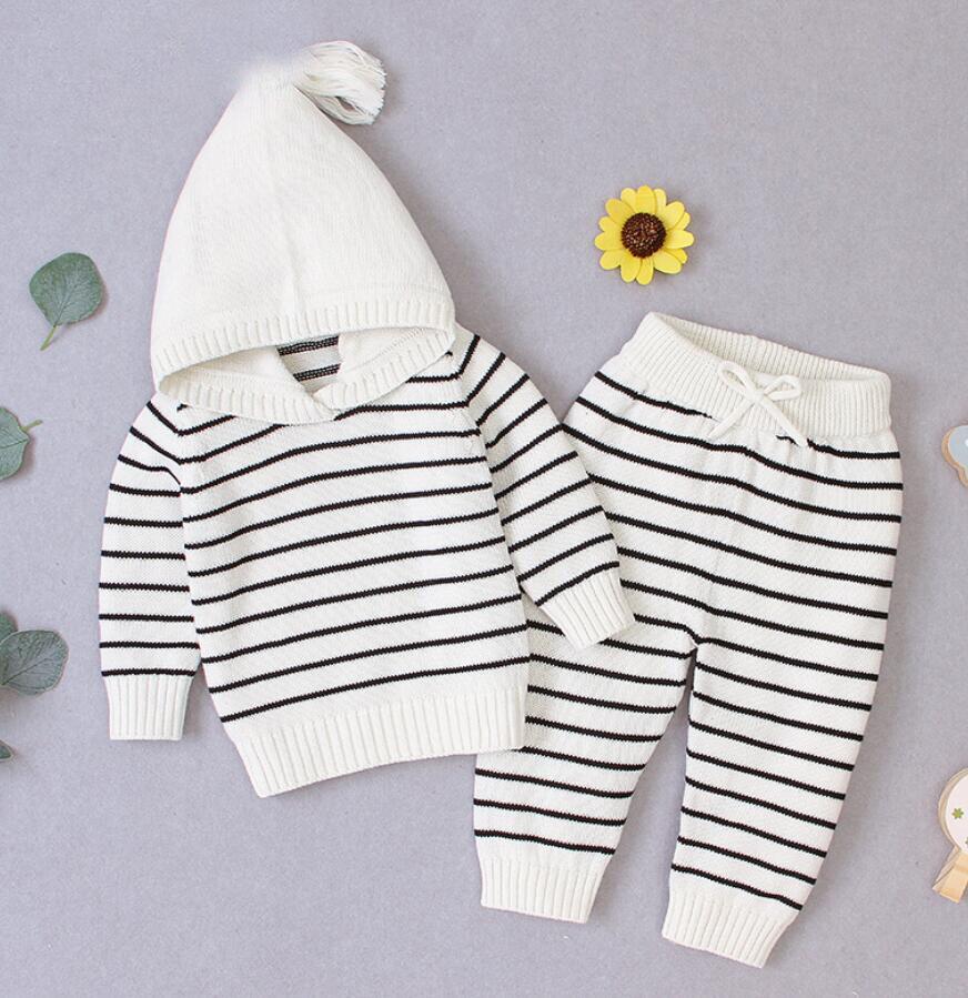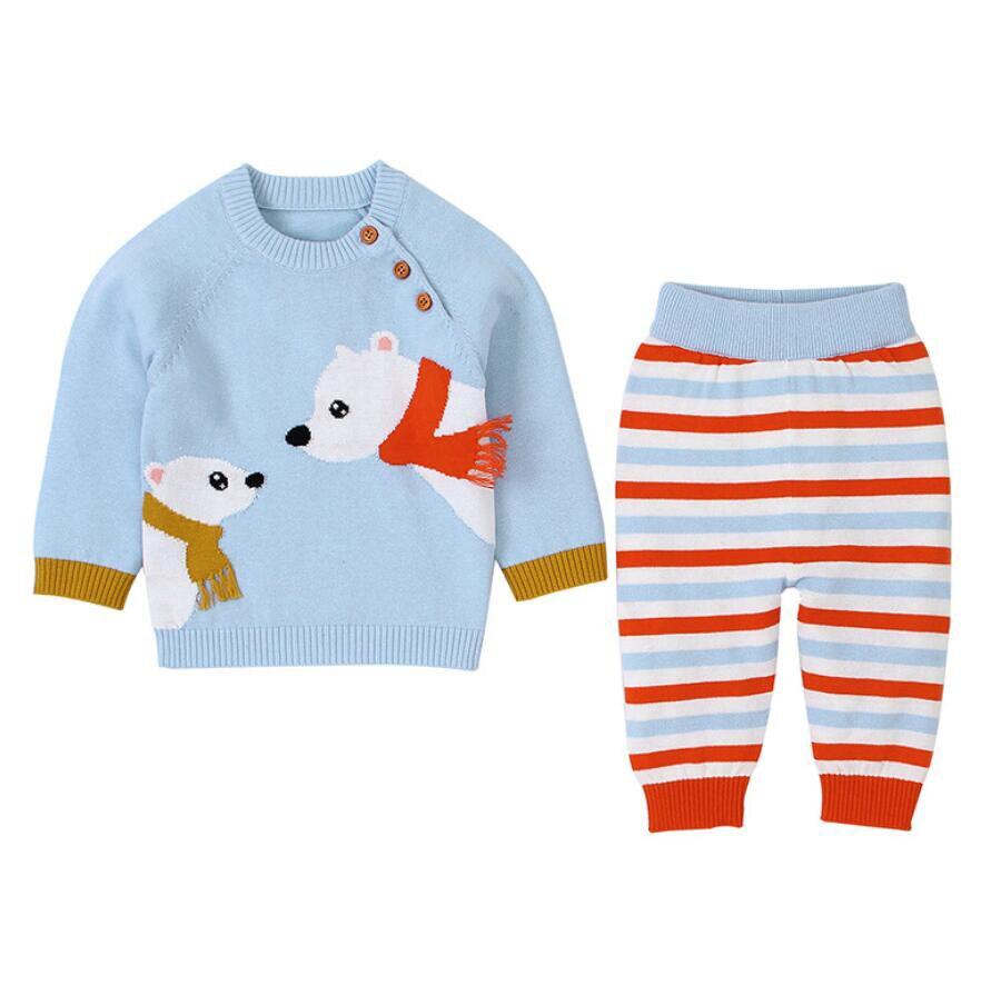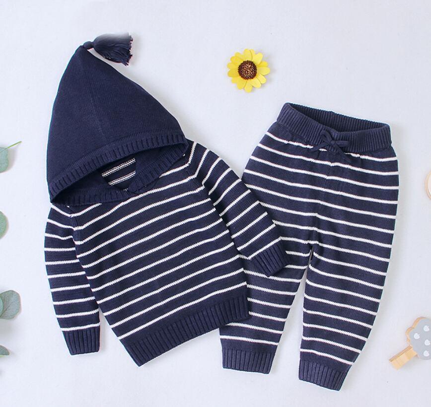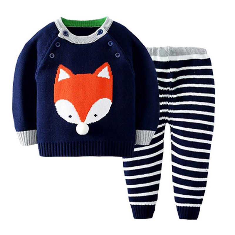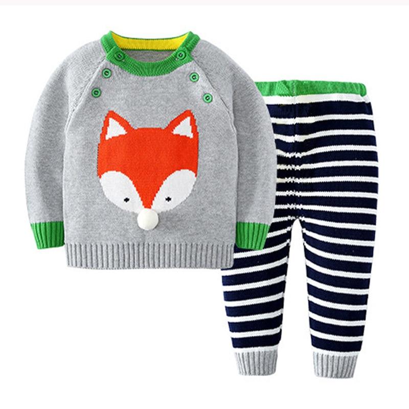 2020 Autumn Winter Baby Boys Girls Long Sleeves Stripe Knit Sweater Suits Kids Clothes Boys Girls Fox Clothing Sets