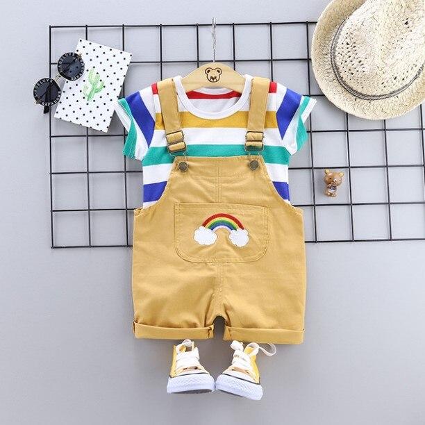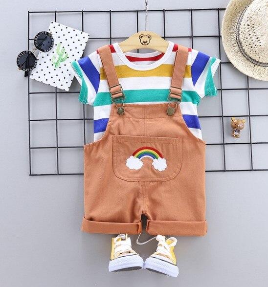 2020 Fashion 1-4 Year Old Boys And Girls Summer Suit Cute Dinosaur Short Sleeve Cotton T-Shirt Overalls 2Pcs Casual Sports Set