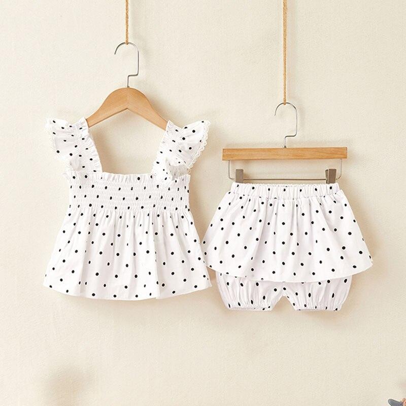2020 Summer Baby Girl Set 1-3Yrs Baby Girls Clothing Sets Baby Dot Short Sleeve Top + shorts+ Hair Belt 3pcs/Set