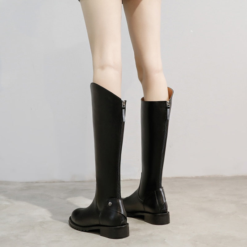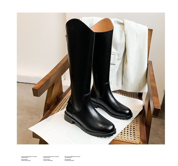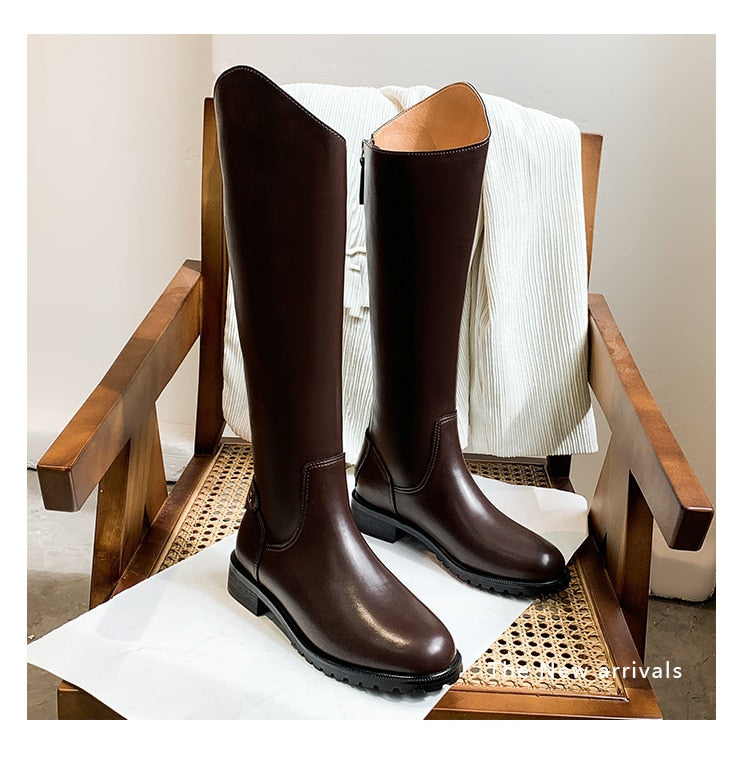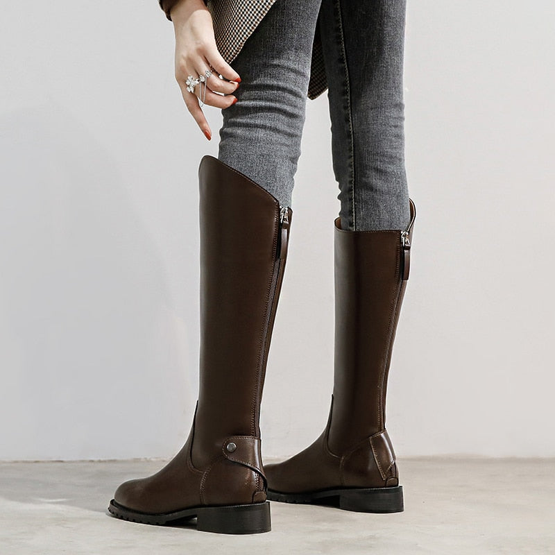 2021 Autumn and Winter New Knee-length Women's Boots Women's Microfiber Round Toe Zipper Warm Winter Boots Ladies Fashion Boots