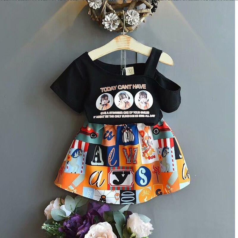 2021 Baby Girls Letter Printed Clothes 2 Piece Sets Summer Fashion Sleeveless Top Mini Skirt Dress Kids Outfit Suit Costume 1-6