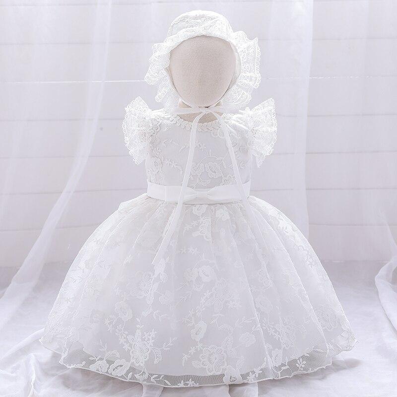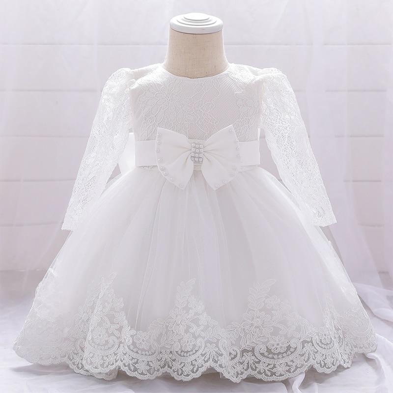 2021 Child Big Bow Baptism 1st Birthday Dress For Baby Girl Clothes Long Sleeve Princess Dresses Party And Wedding Infant Dress