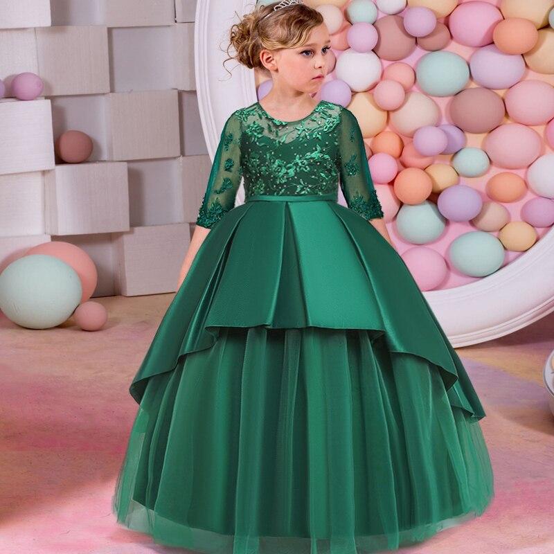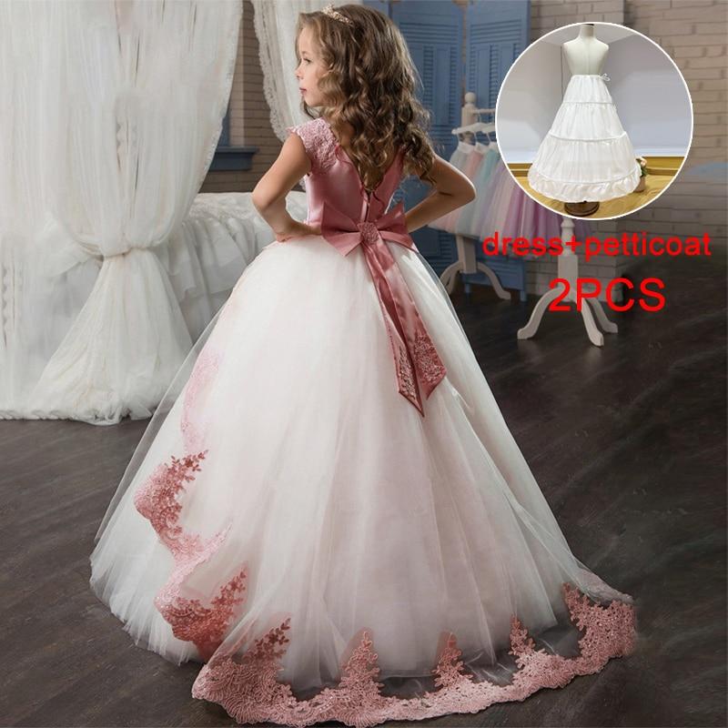 2021 First Communion Bridesmaid Girl Lace Princess Dress Kids Dresses For Girls Children Costume Party Wedding Dress 10 12 Years
