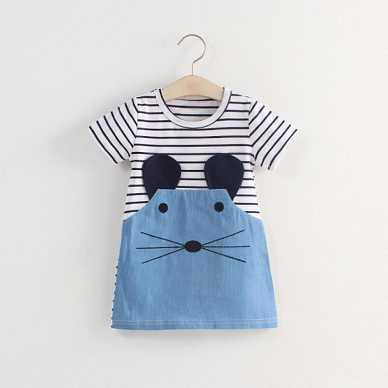 2021 Girls Stripe Princess Dress Elegant Kids Short Sleeve Dresses Children Cartoon Clothing Summer Girl Dress Size 2 3 4 5 6 8