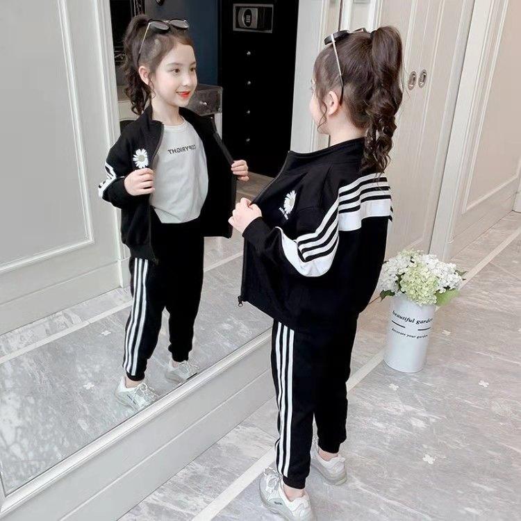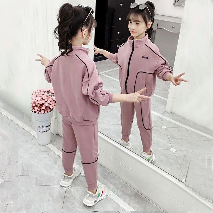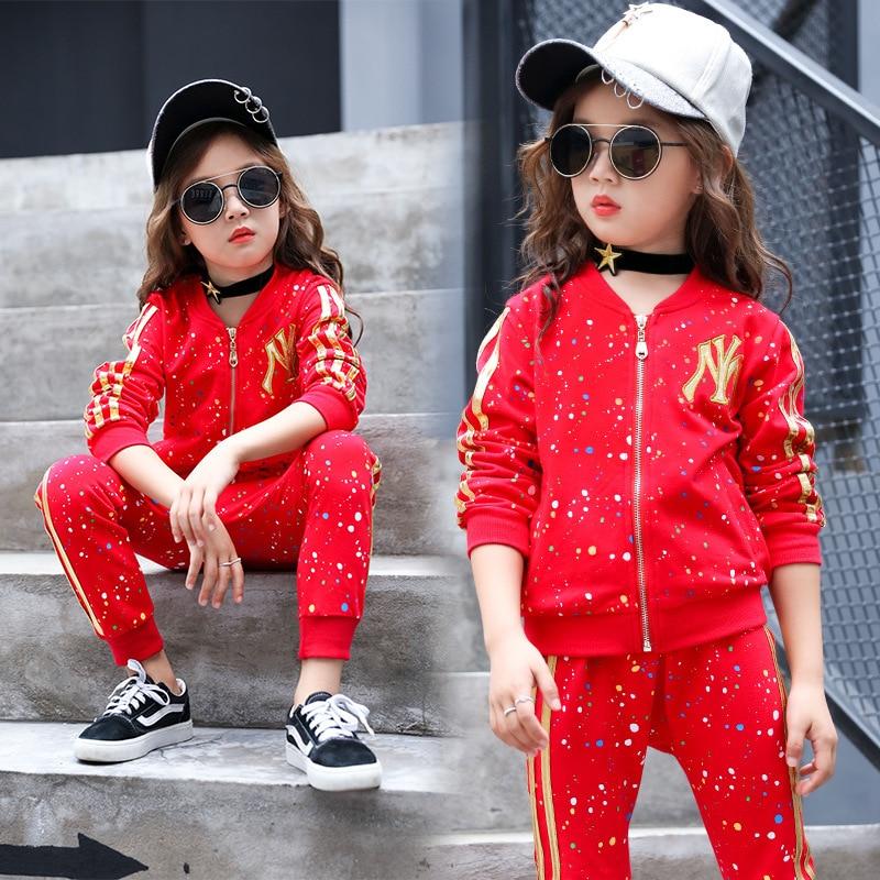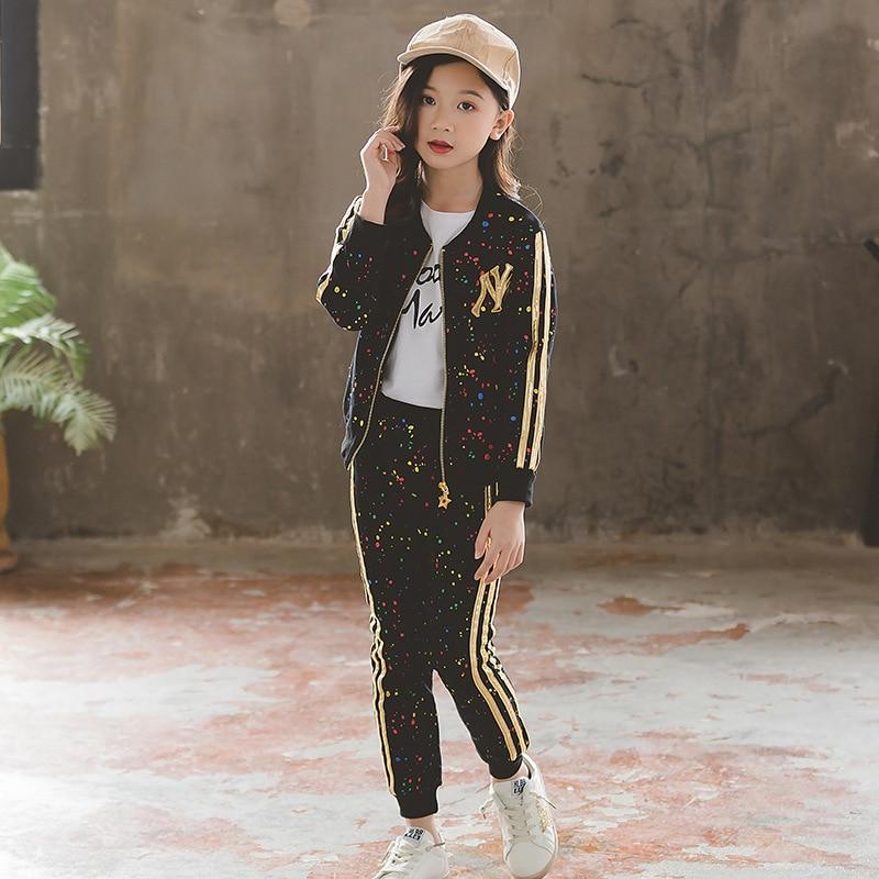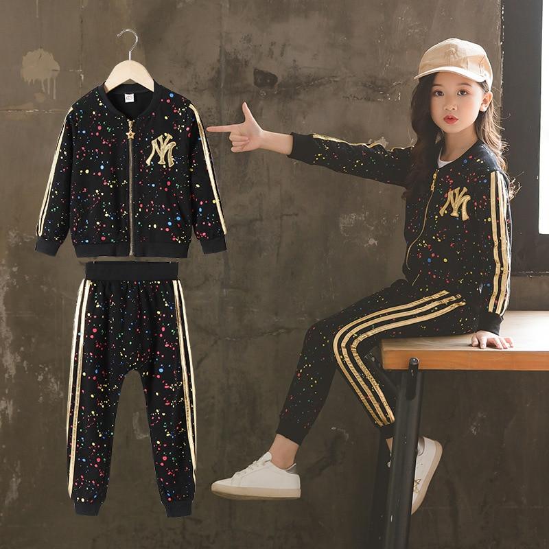 2021 New Autumn Spring Girls Clothing Suits Winter Coat Kids Colored Dots Cotton Sweatshirt Tracksuit Sport Suits Outwear
