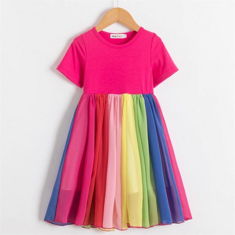 2021 New Girls Dress Sleeveless Rainbow Color Kids Clothes Fashion Princess Dresses Toddler Girl Clothing 2-6T Carnival Dress
