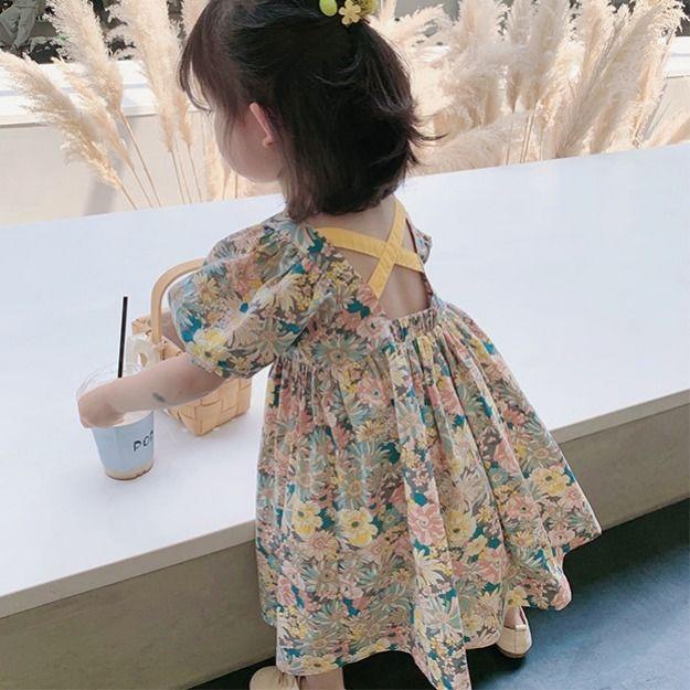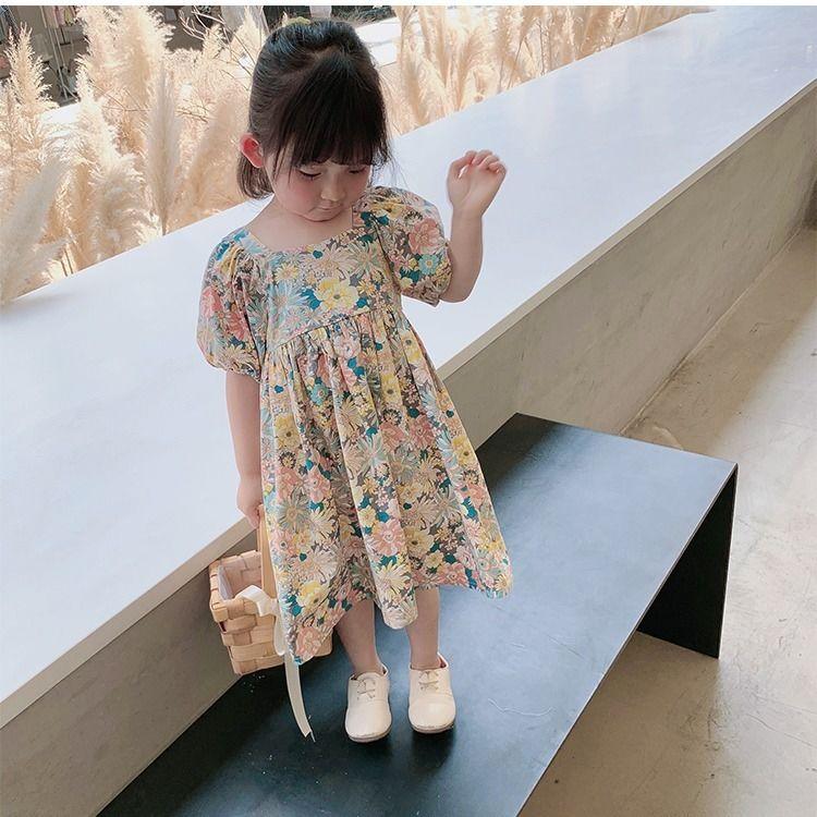 2021 Summer New Fashion Baby Girl Dresses Princess Clothing Cute Party Cotton Flower Children Short Sleeve Sweet Floral Dress