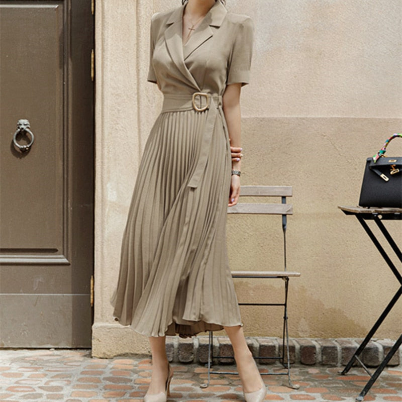 2021 Summer New Women Short Sleeve Office Lady Work Wear Elegant Female Lace-Up Midi Dress Vestidos
