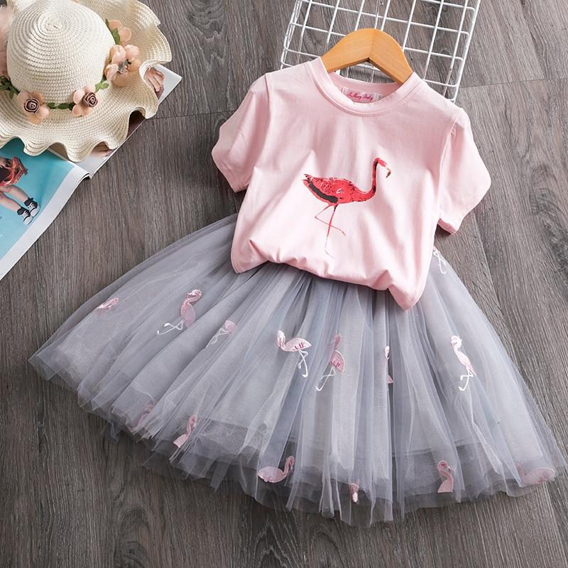 2021 Toddler Girl Kids Set 2 Piece Girl Set Dresses Party Little Girl Clothes for Flamingo Girls Dress Summer Clothing 7 Years