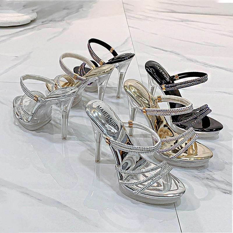 2021Summer Comfortable And Fashionable Colorful Diamond Fish Mouth Sandals Women's Sexy Party Crystal Transparent Stiletto Shoes