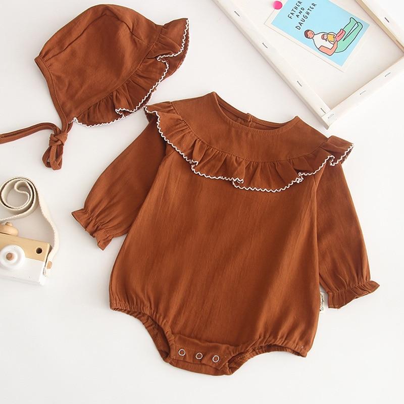 2pcs Baby Rompers+Hat 2019 Spring Newborn Infant Color Long Sleeve Jumpsuit Play Suit For Baby Girl Fashion Baby Girl Clothes