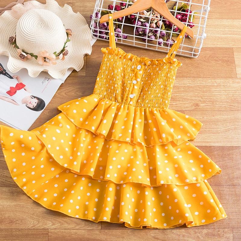 3-8 Years Summer Dress For Girls Flower Polka Dot Sling Cake Fluffy Dresses Wedding Party Princess Bridesmaid Formal Gown
