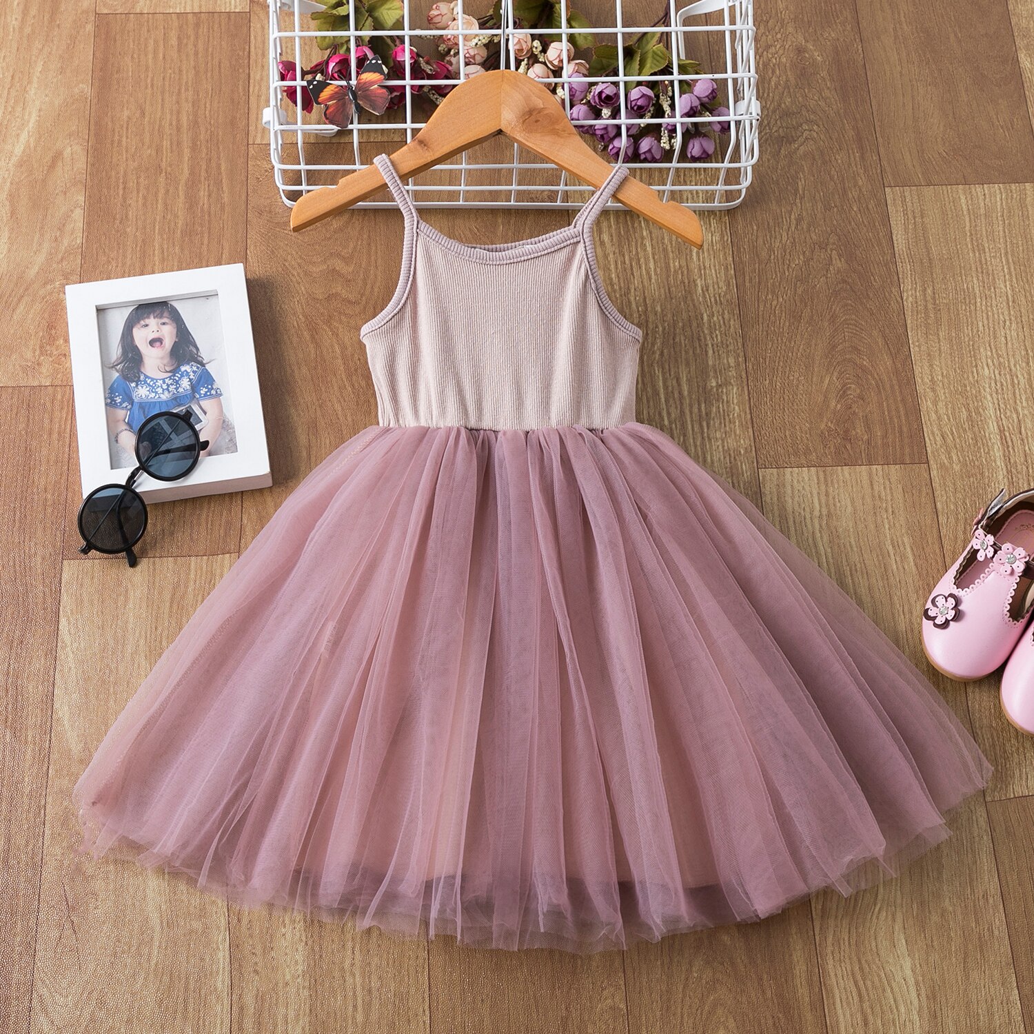 3-8 Years Summer Dress For Girls Flower Polka Dot Sling Cake Fluffy Dresses Wedding Party Princess Bridesmaid  Formal Gown