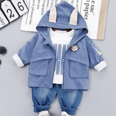 3 Pieces Baby Boy Clothes Set Infant Kids Zipper Jacket + T Shirt + Jeans Child Costume Children Clothing