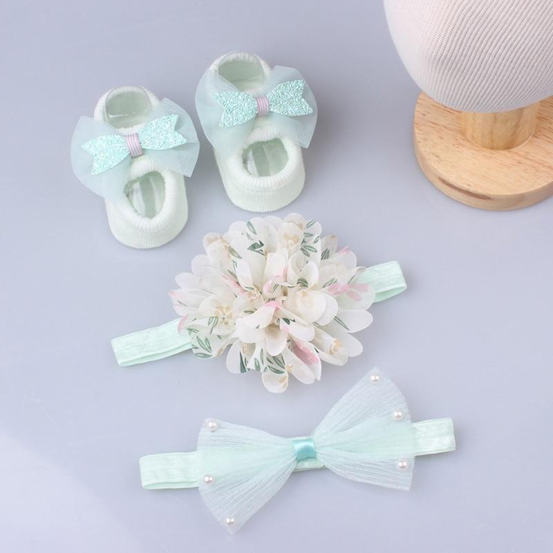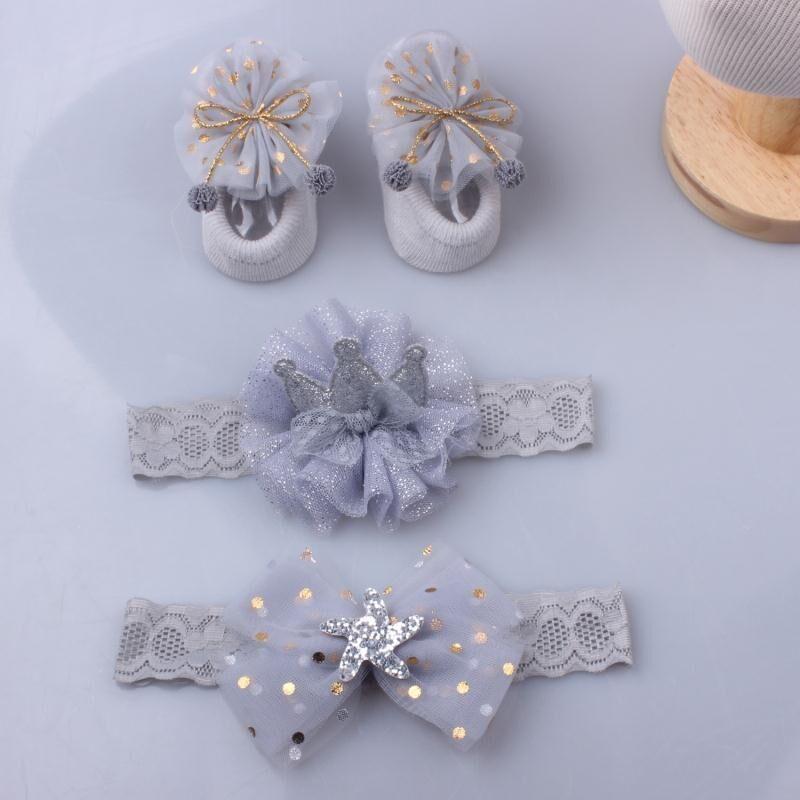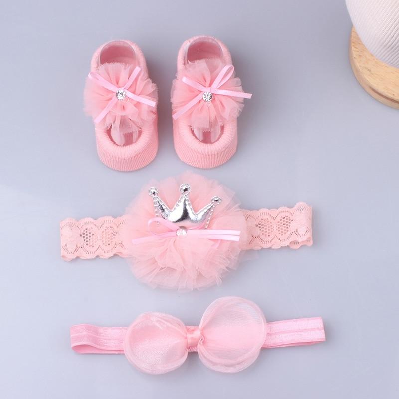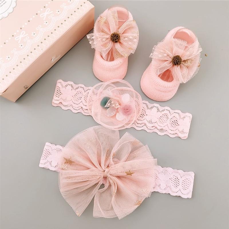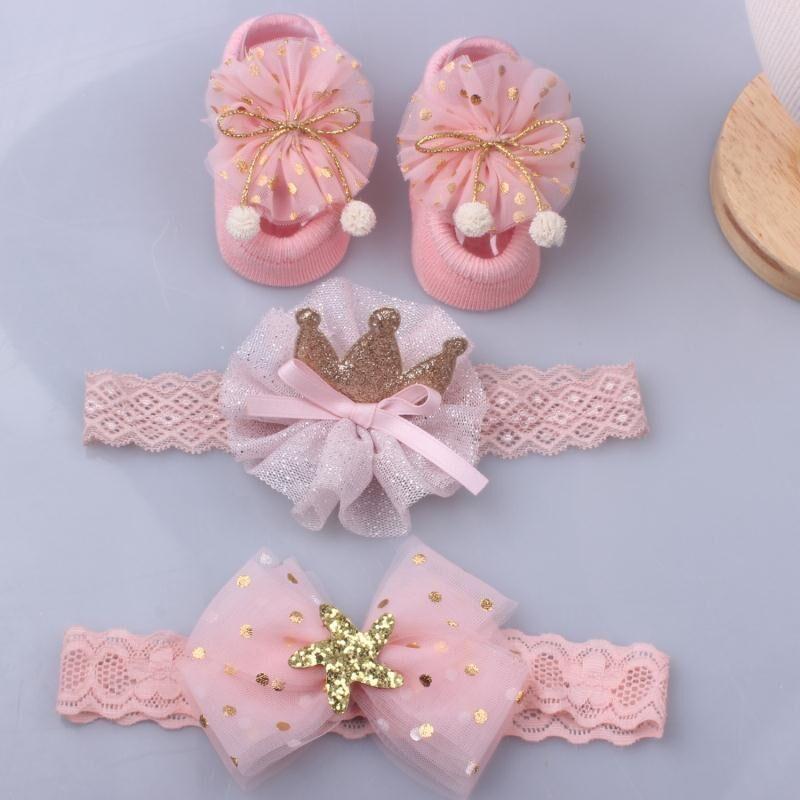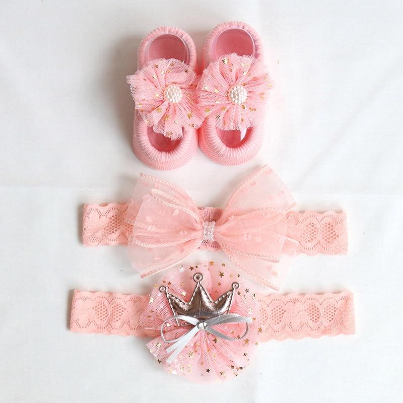 3Pcs/Set Lace Flower Baby Girl Headband Socks Set Crown Bows Newborn Hairband Headbands For Girls Turban Baby Hair Accessories