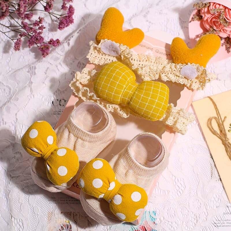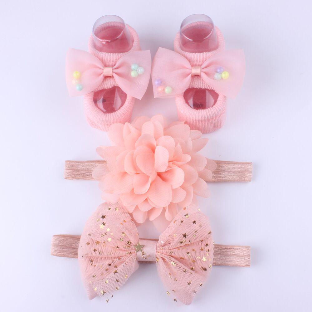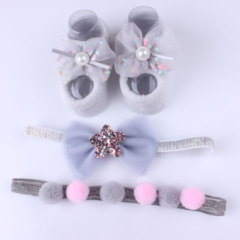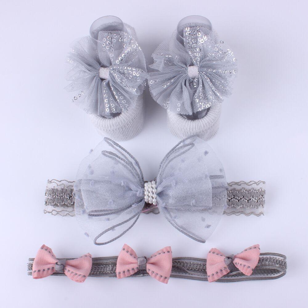 3Pcs/Set Lace Flower Baby Girl Headband Socks Set Crown Bows Newborn Hairband Headbands For Girls Turban Baby Hair Accessories