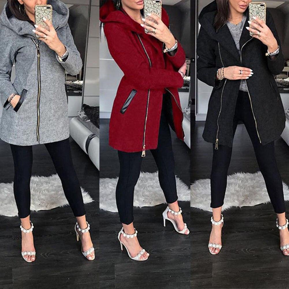 Autumn Winter Plus Size Fashion Women Coat Solid Color Long Sleeve Hooded Jacket Coat Outerwear Long Section Women's Coat gifts