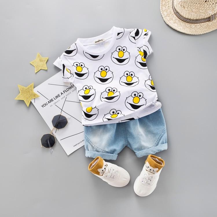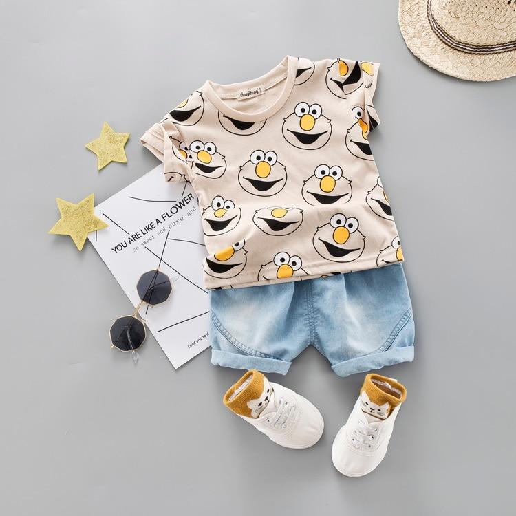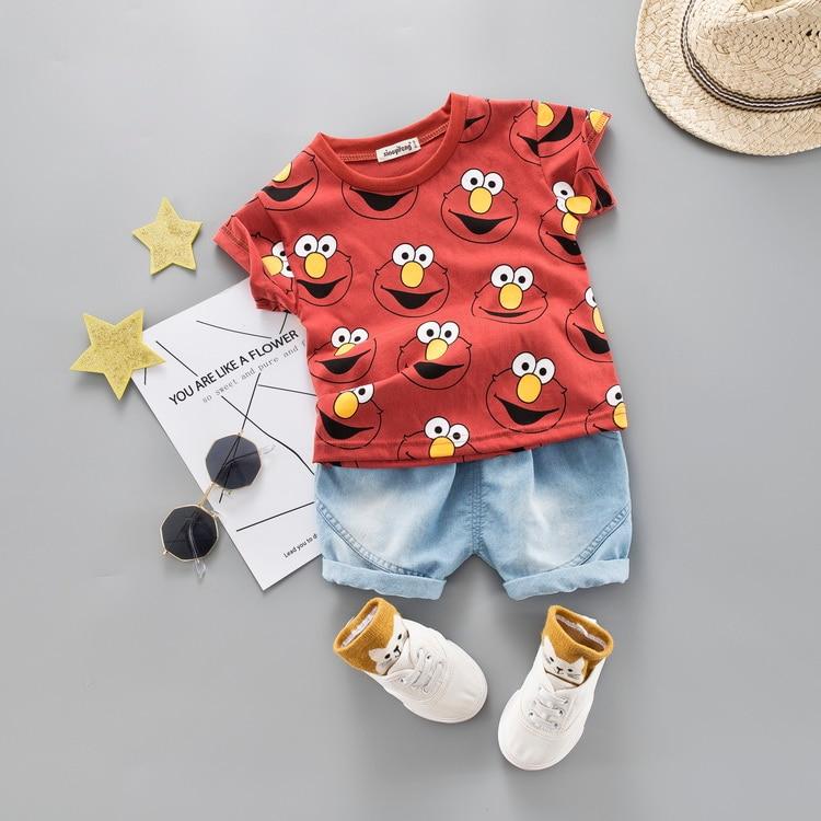 Baby Boy Clothing Set Kids Cute Summer Suit T-Shirt Denim Shorts Cartoon Children Outwear 1 2 3 4 Years Cotton Outfits Khaki Red