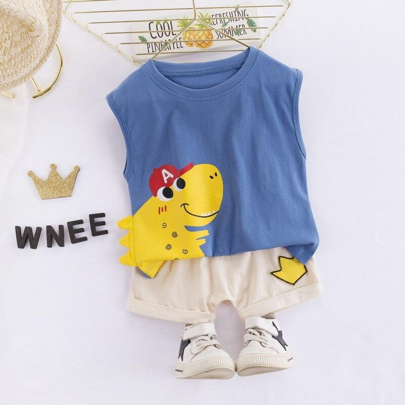 Baby Boys Cartoon Clothes 1 2 3 4 Years Children Outfits Cotton Dinosaur Vest + Shorts Set Soft Toddler Kids Costume