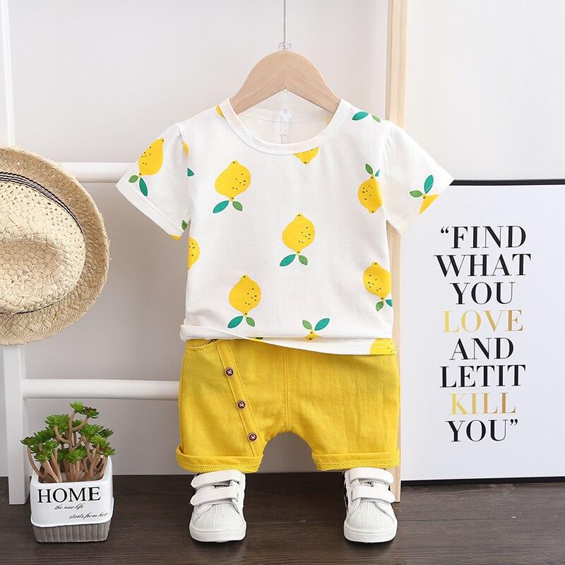 Baby Boys Girls Summer Clothes Fashion Cotton T-shirt Infant Printed Pineapple Suit for Children Top + Shorts Casual Outfits