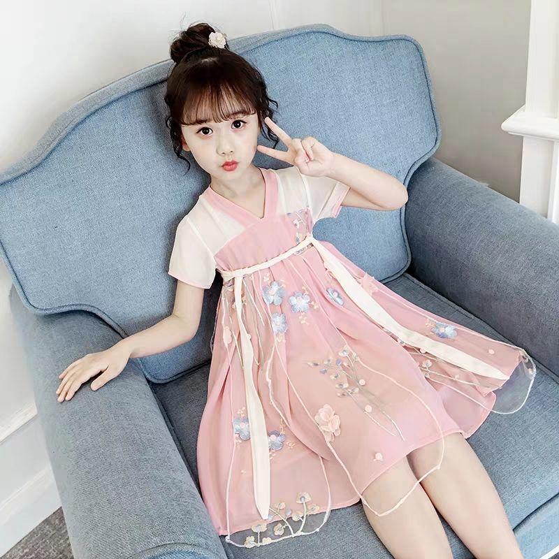 baby girl dress 2-11 years old Hanfu children Tang costume Classical little fairy baby girl clothes Ethnic embroidered flower