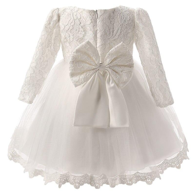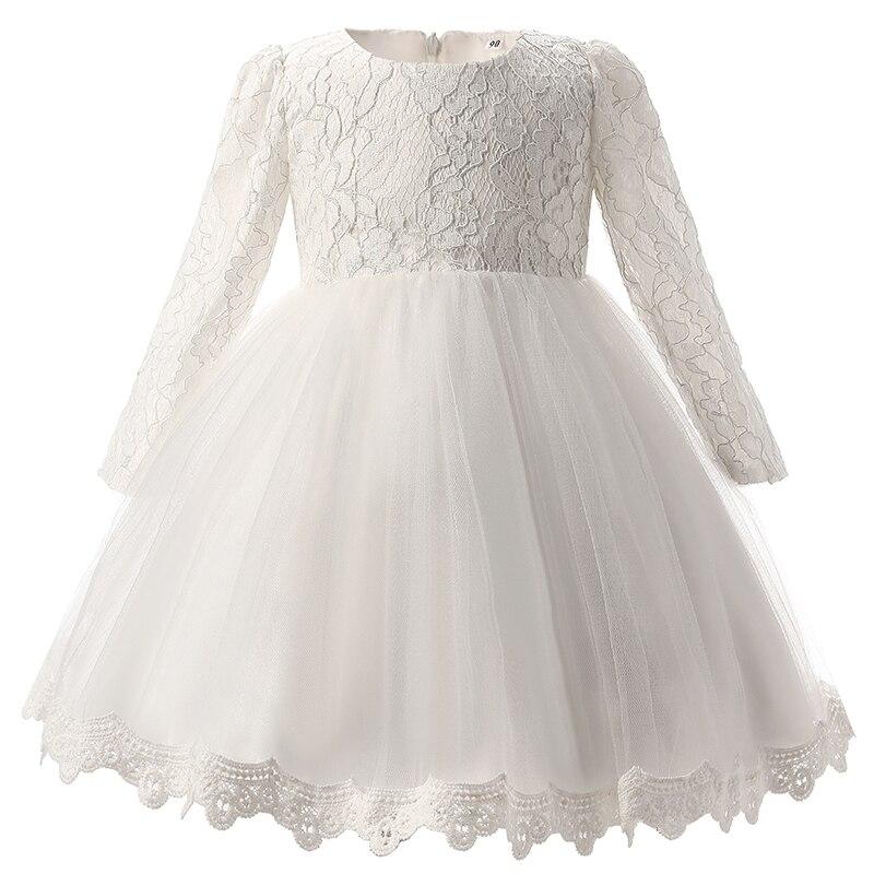 Baby Girl Long Sleeves Dress Newborn White Baptism Dress Flower Girls Dress Toddler Christening Gown Elegant Lace Princess Dress