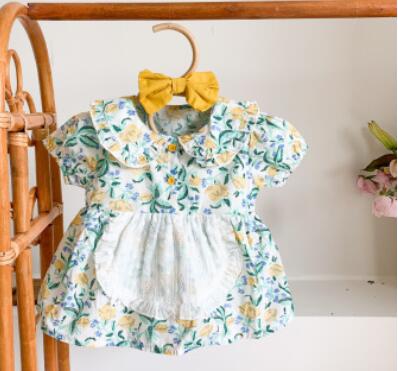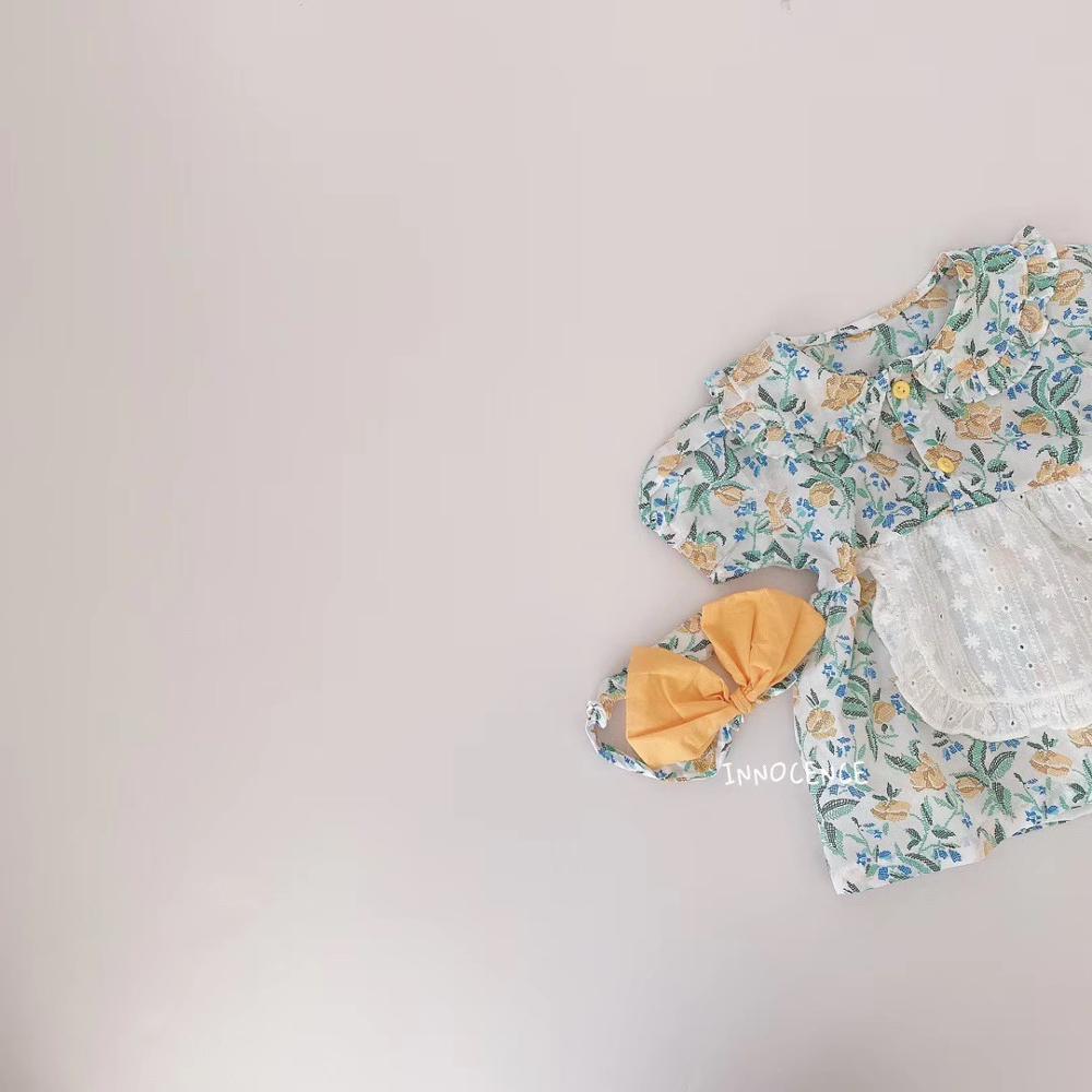 Baby Girls Flower Rompers 2020 Newborn Shorts Sleeve Clothing + Hair Band Toddlers Kids Jumpsuits Korean Style Infants Clothes