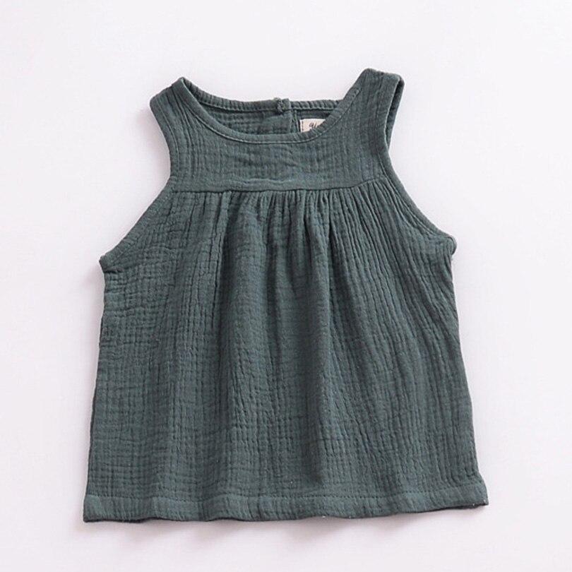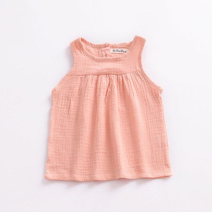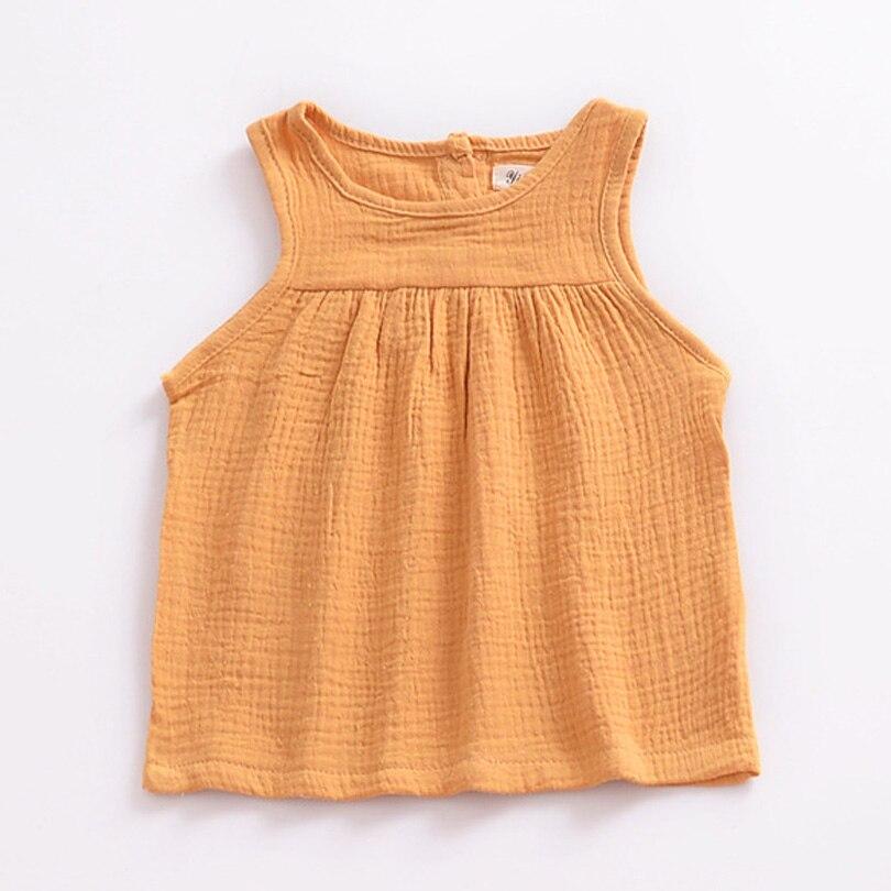Baby Girls Summer T Shirts Linen Cotton Kids Sleeveless Top Tees Children's Clothing Newborn Vest Tops Toddler Clothes 0-4Y