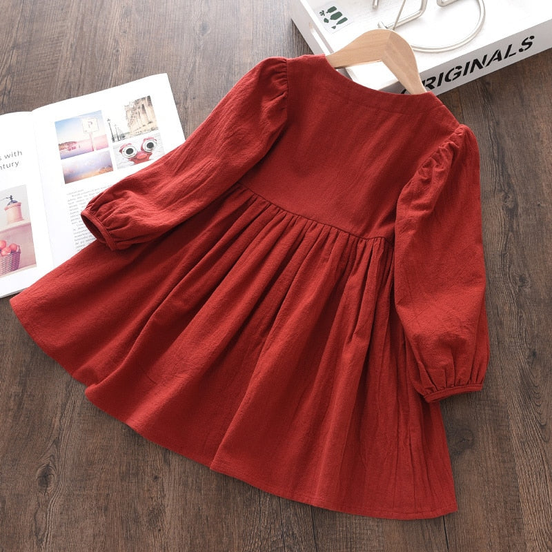 Bear Leader Girls Solid Long Sleeve Dresses 2022 New Fashion Kids Girl Casual Party Costumes Children Soft Vestidos 3-7 Years