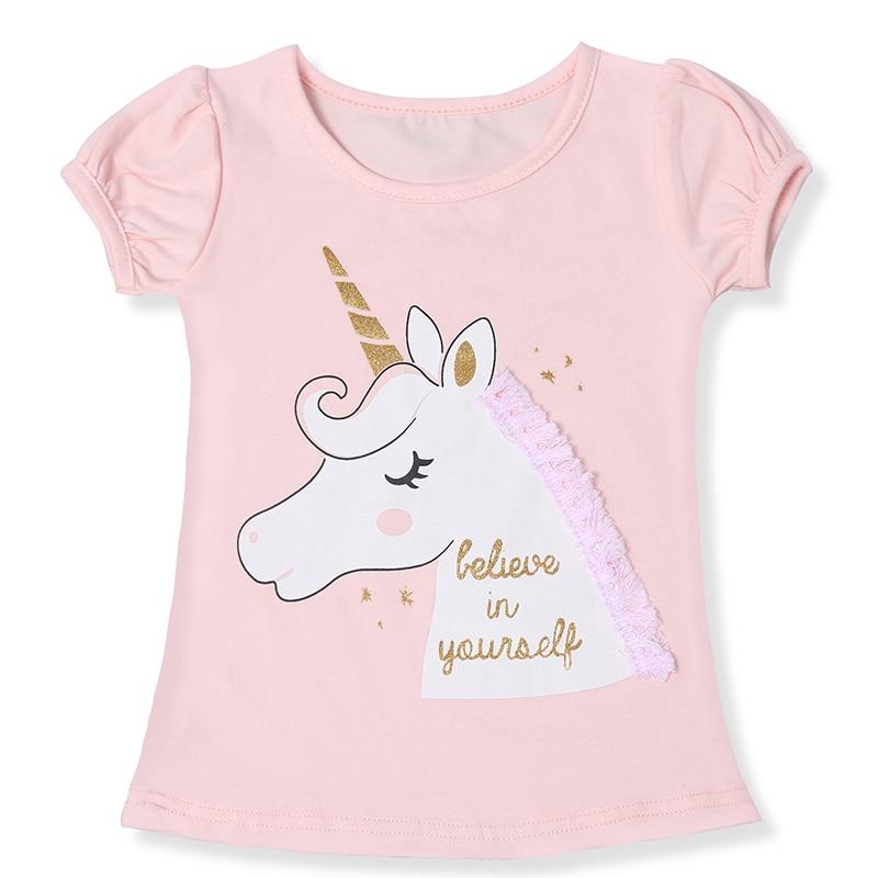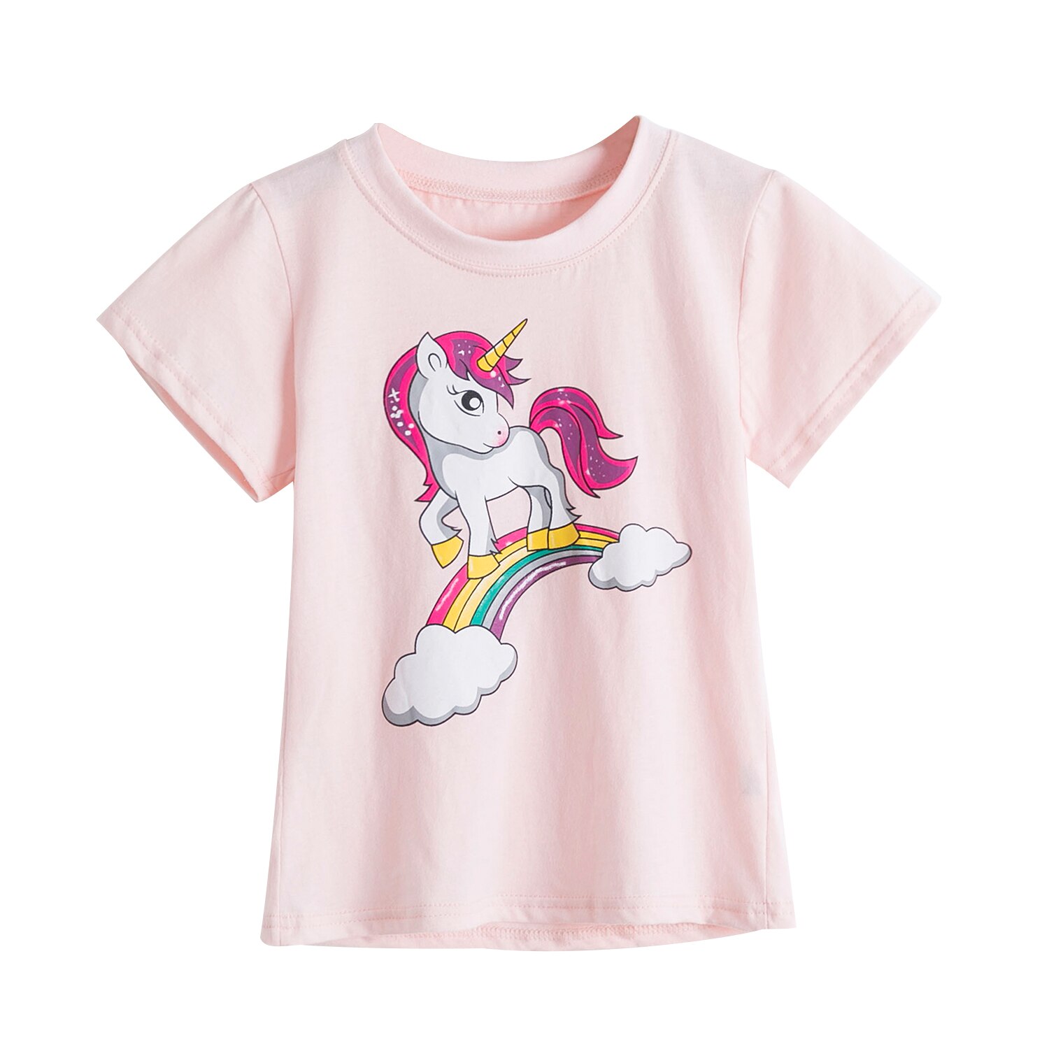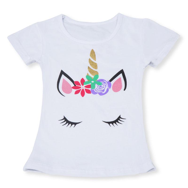 Black White Tees For Girl Boys T-shirts Short Sleeve Summer Clothes Cartoon Unicorn Unisex Tops Girl T shirts 3-8T Kids Clothing