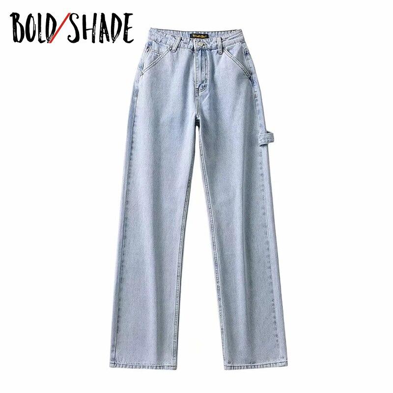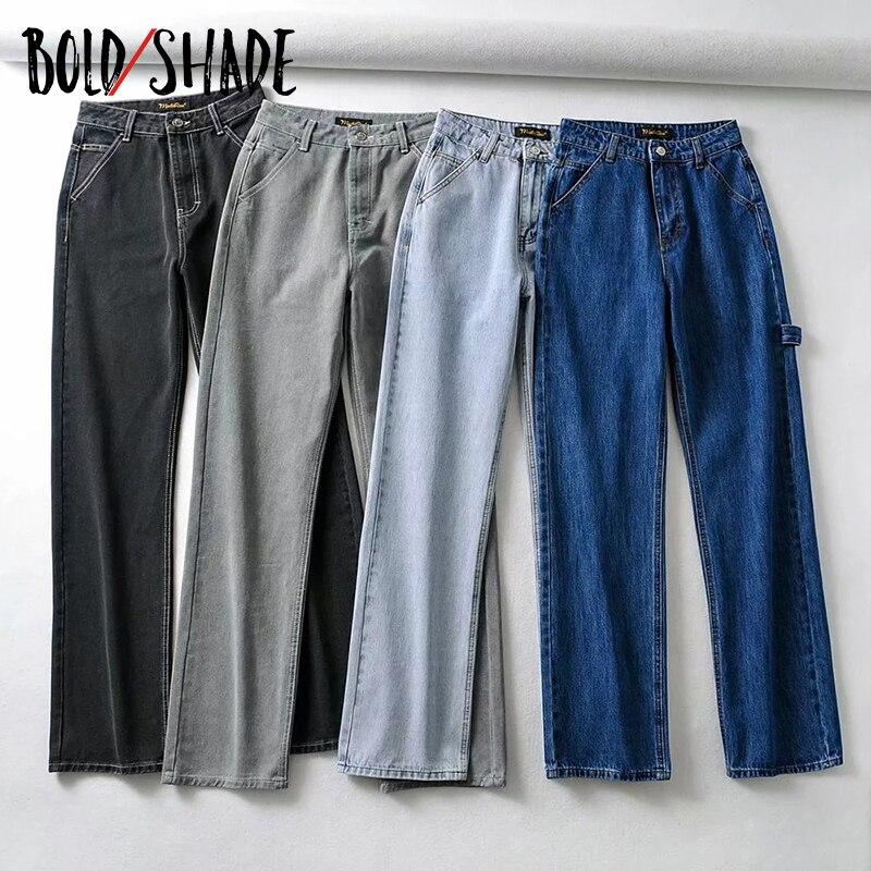 Bold Shade Streetwear Fashion Grunge Jeans High Waist Straight Boy Friend Pants Solid Teen Style Women Loose Jeans Fall Winter