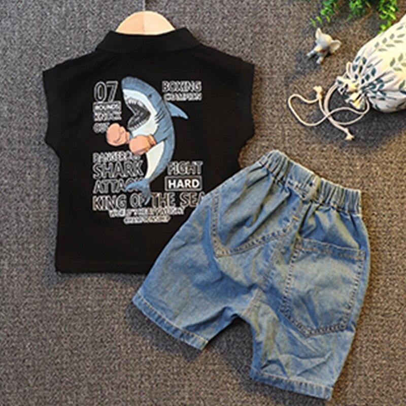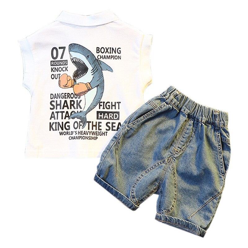 Boys Suit Clothes Summer Baby Short-Sleeve Shark Shirt + Soft Denim Shorts 2PCS Animal Costume For Kids Clothes