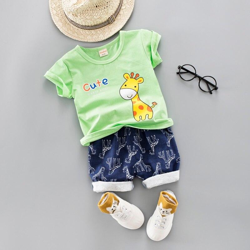 Cartoon Boys Girls Clothes Summer 2021 Short-sleeved T-shirt with Shorts Set Cotton Two-piece Suits Toddler Girl Clothes