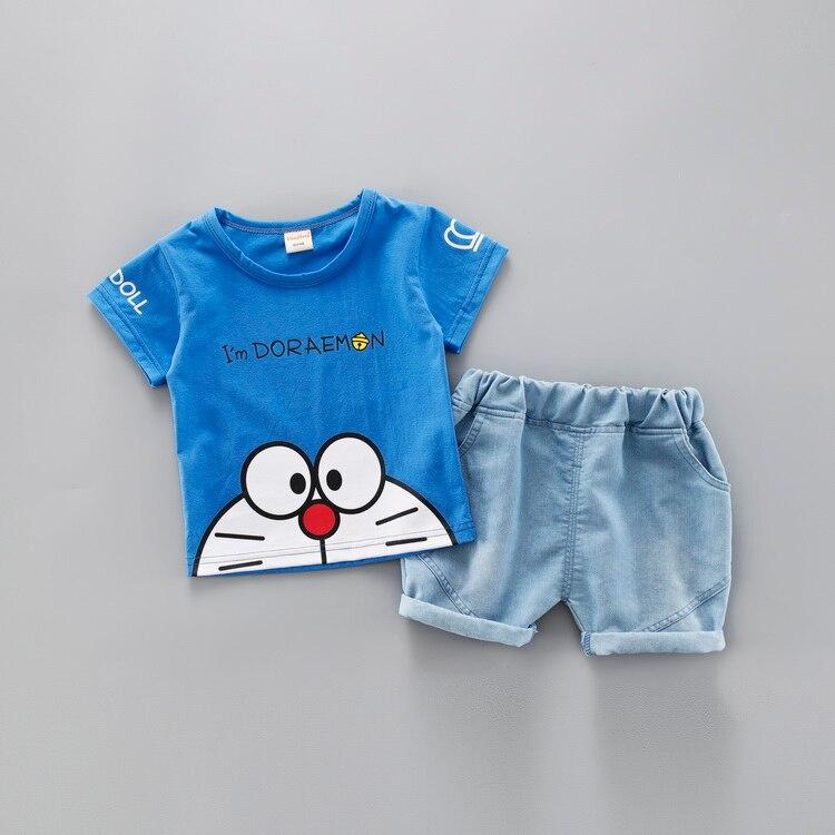 Cartoon Toddler Boy Clothes Summer Set 2 Color T Shirt Short Jeans Children Clothing Short Sleeve Shirt Boys Suit Baby Tracksuit