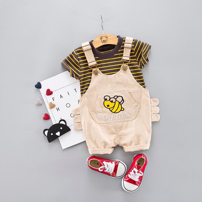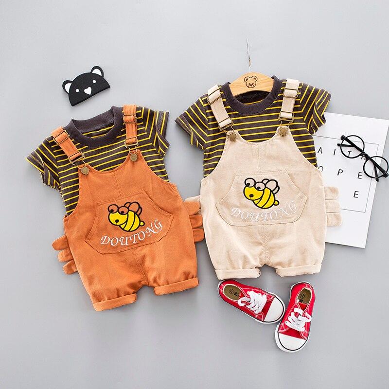 Casual Boys Clothing Set Baby 2pieces/Set Clothing Striepd T-Shirt + Short Overalls Infant Outfits Set Baby Clothes Suit