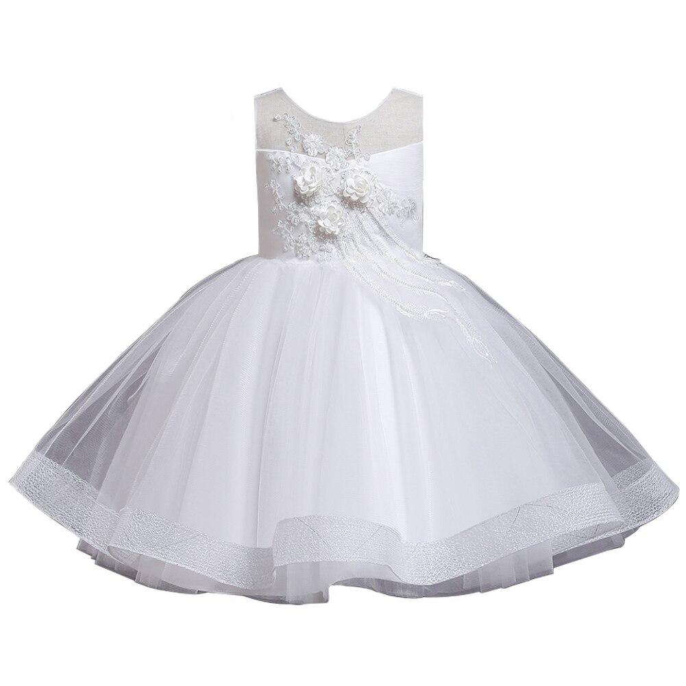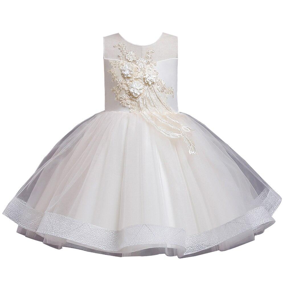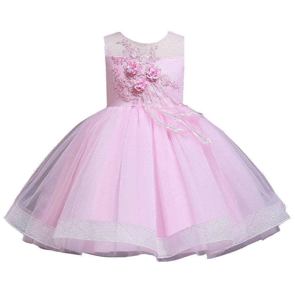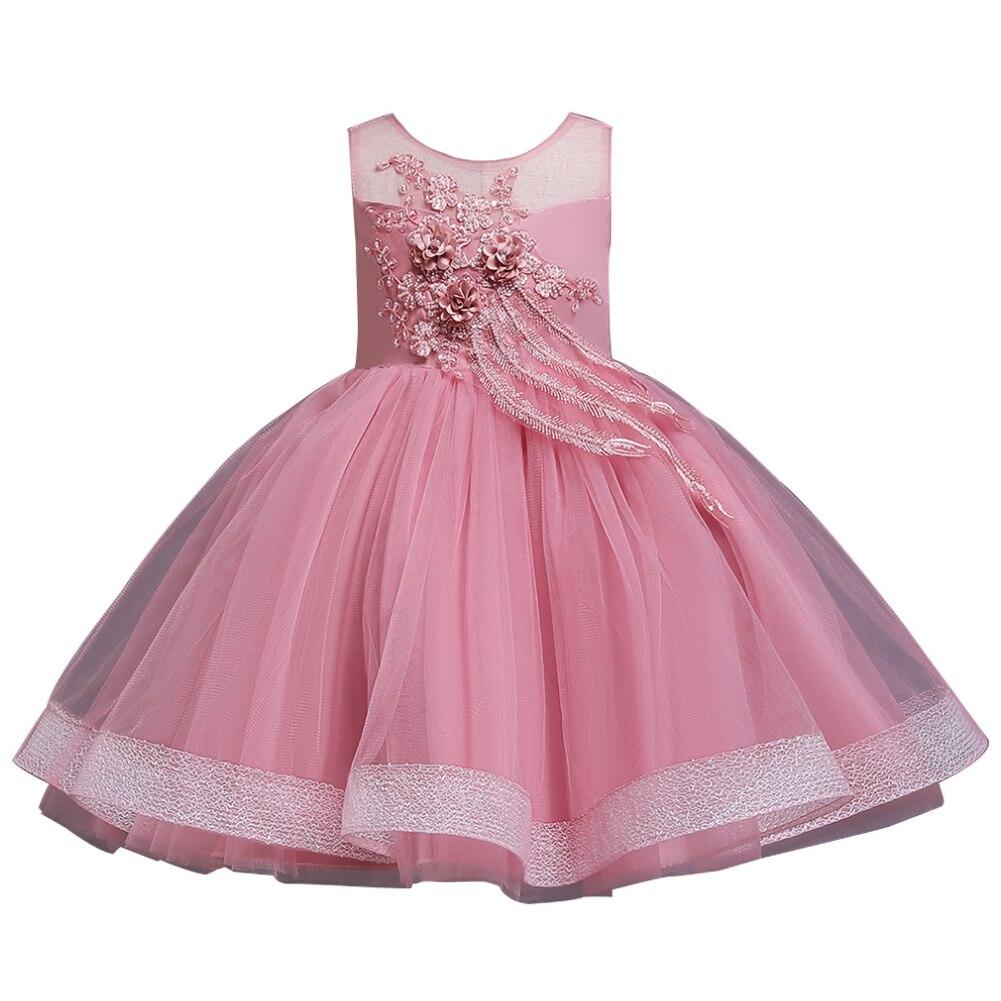 Child Blue Temperament Flower Wedding Dress for Kids of 2-6 Years Old Baby Girls Clothing Designs Round Neck Sleeveless