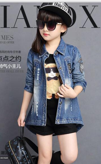 Children Denim Jacket 2016 Autumn Girls Cardigan Outerwear & Coat Girls Princess Long-Sleeved Trench Jacket Age 3-13 T