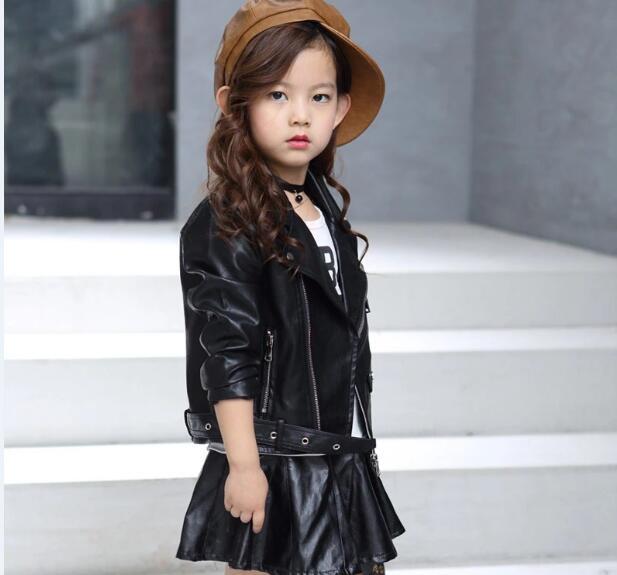 children's pu jacket Girls motorcycle jacket kid outwear solid color Zipper belt Faux Leather spring Autumn fashion pu jacket