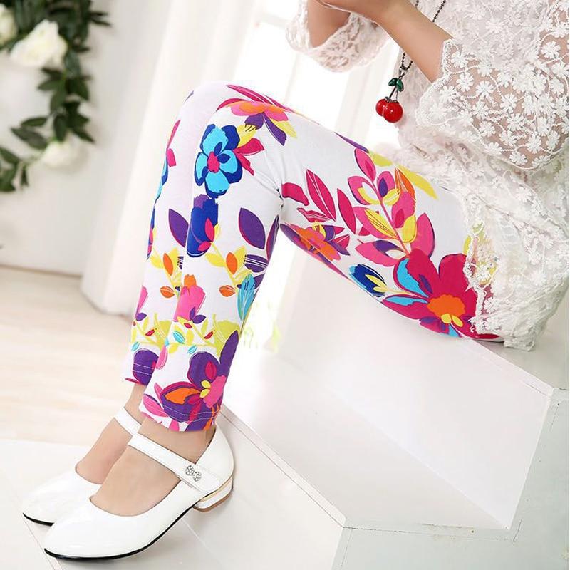 Colorful Girls Leggings Girl Autumn Clothes Pencil Pants Cotton Kids Trousers Print Flower Skinny Children Leggings For Girls