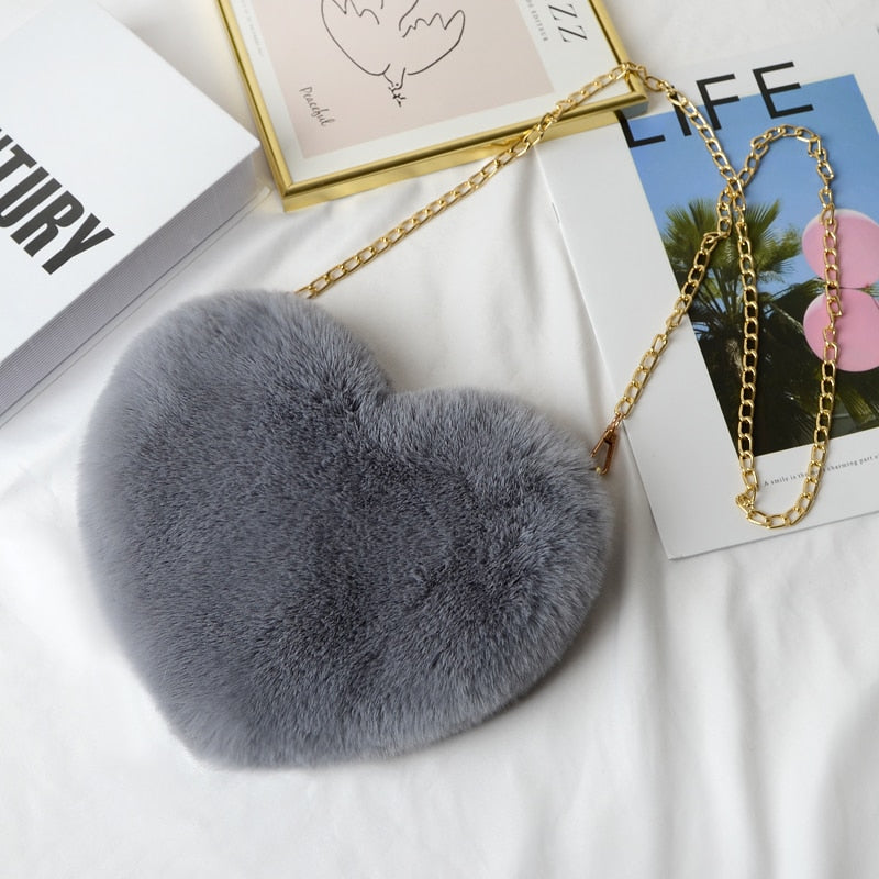 Crossbody Bags for Women Rex Rabbit Fur Love Bag Peach Heart Bag Chain Bag Fashion Shoulder Cross-chain Female Bag