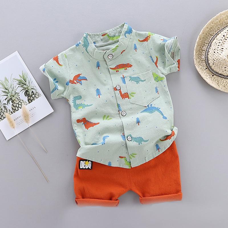 Cute Baby Boy Clothes Summer Set 2021 New Cartoon Dinosaur Print Short Sleeve Shirt + Pants for 1 2 3 4 Years Kid Toddler Outfit